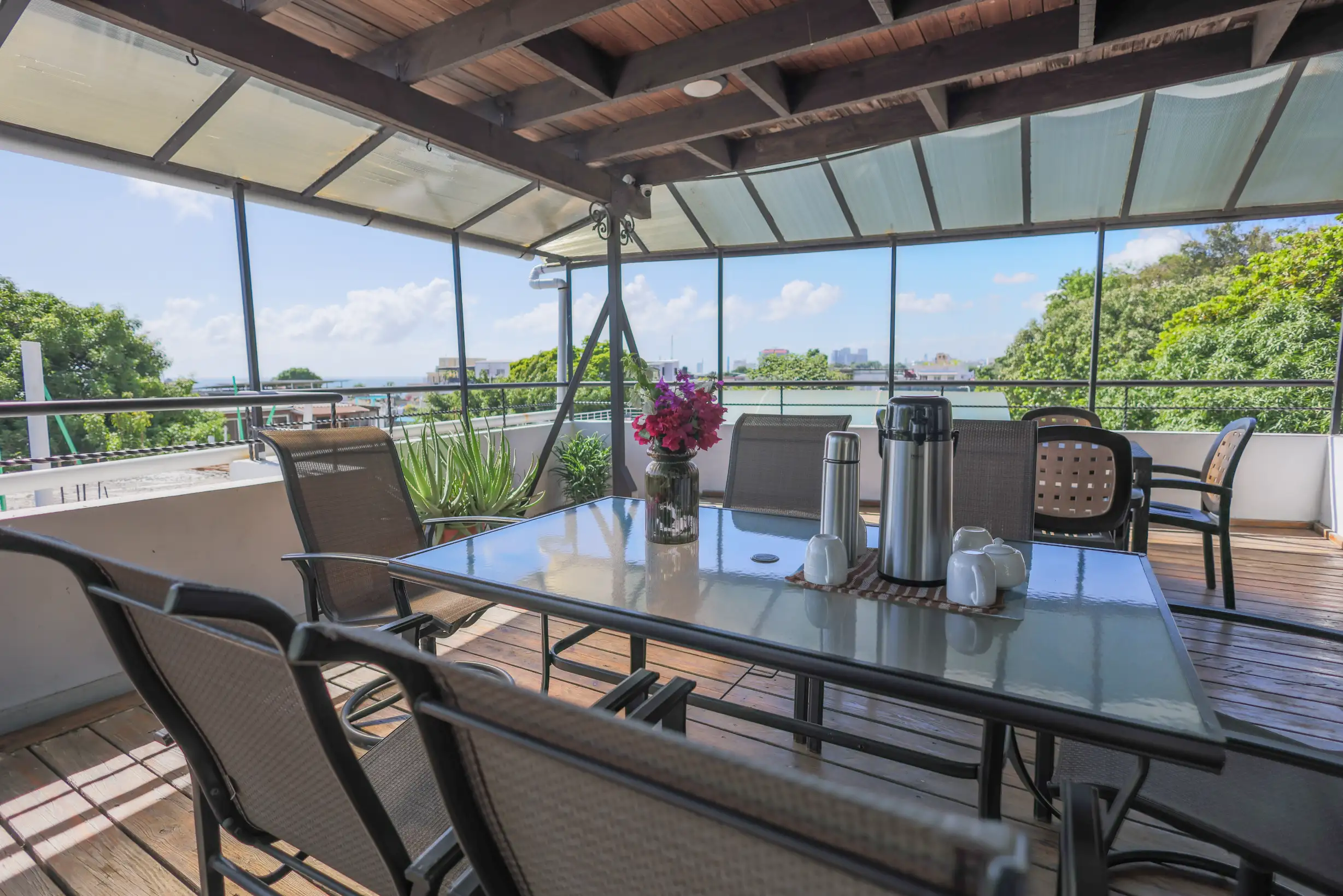 Sube a la terraza y déjate envolver por la brisa caribeña — vistas al mar, viento suave y el lugar ideal para perderte en un buen libro.